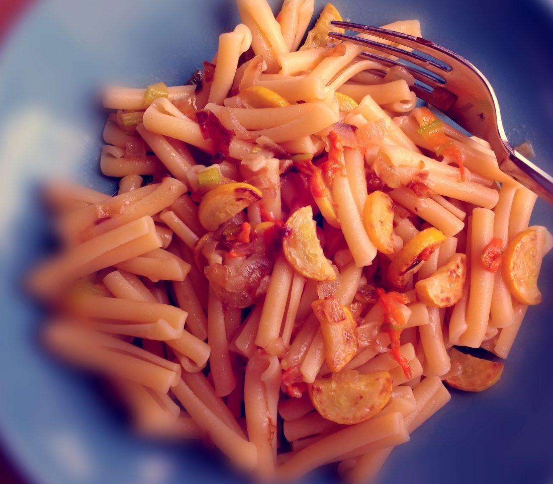 Cooking for an Italian is as vital as breathing and walking, and often we don’t cook from a recipe, but somehow we know how to make the most of what we’ve got. Very often in Italian cookbooks there are terms like q.b. (quanto basta) it means that there is no specific quantity for some ingredients, but you need to use your judgment and your taste to decide how much is enough. Today I went to visit a friend for a nice chat over coffee and she showed me her beautiful vegetable patch, I couldn’t resist and I picked a yellow courgette and a courgette flower and, as soon as I’ve…